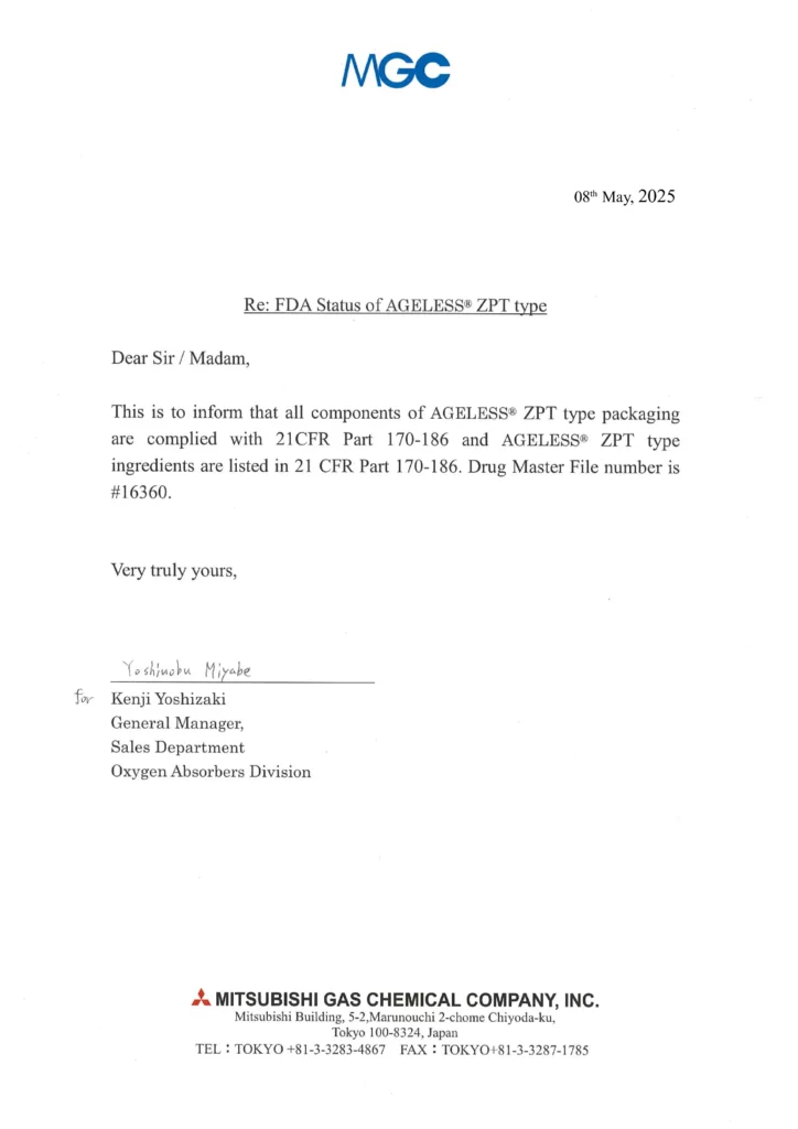 AGELESS by Mitsubishi is World#1 Brand in Oxygen Absorbers. Made entirely from 100% activated ingredients -providing MAXIMUM AIR EXPOSURE Time.